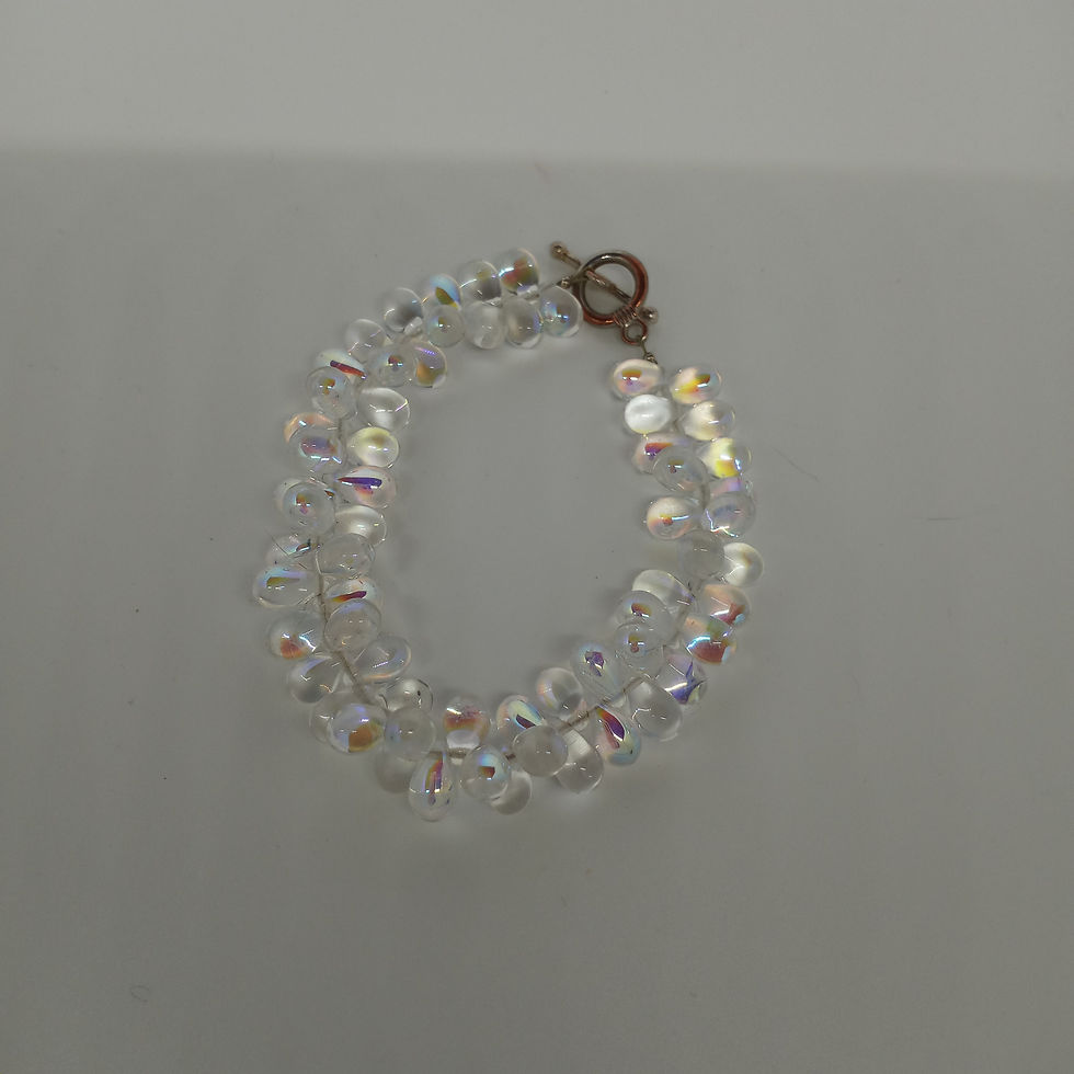 7 inch irredesent bracelet with toggle clasp. Looks amazing on wrist