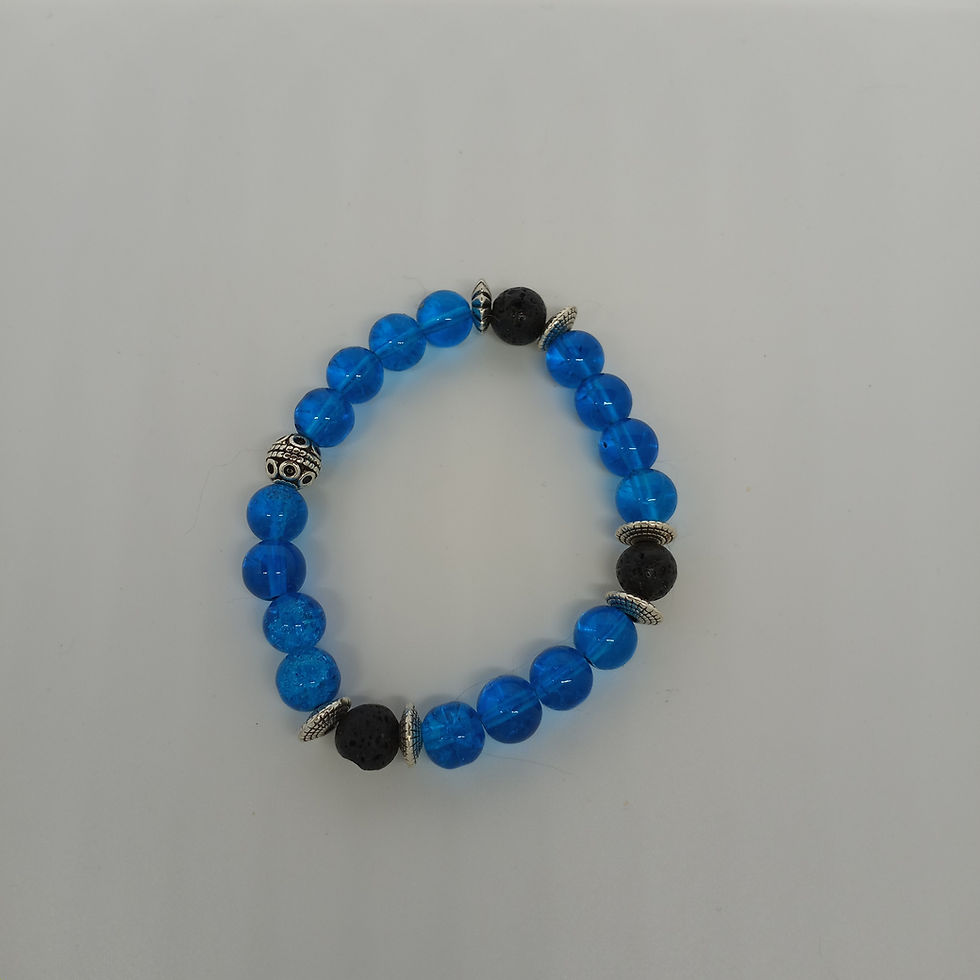 7 inch Stretchy blue cracked glass/ lava rock Bracelet